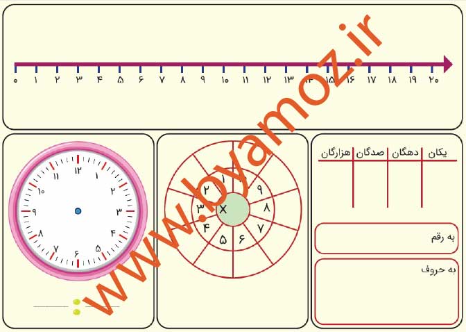 • ✅ محور اعداد از صفر تا بیست برای آموزش شمارش و عددشناسی