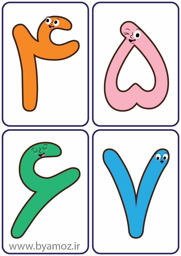 کارت عددهای فارسی رنگی و فانتزی | سایز بزرگ مناسب چاپ و لمینت